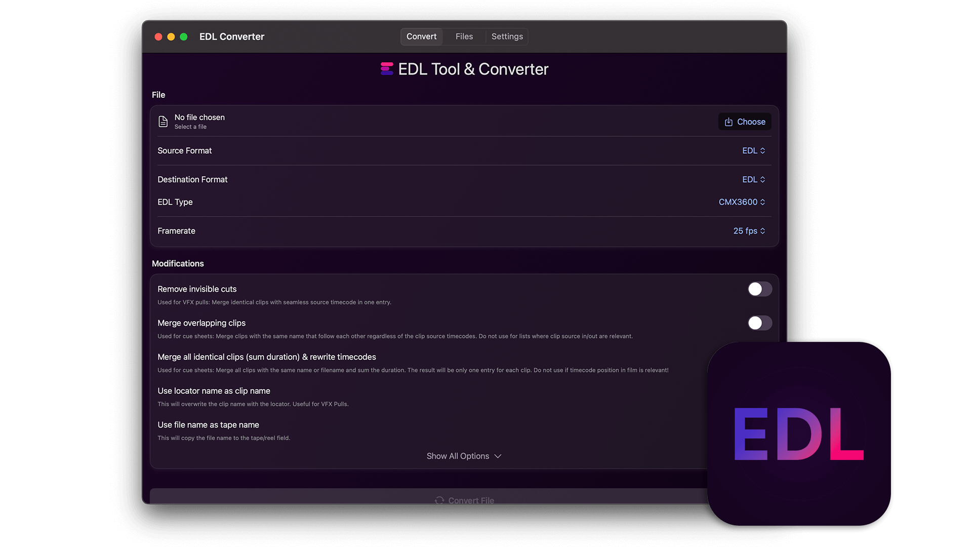 This is the second tool that we started porting for offline use. Convert Edit Decision Lists (EDLs) quickly into lists, sheets and other formats.