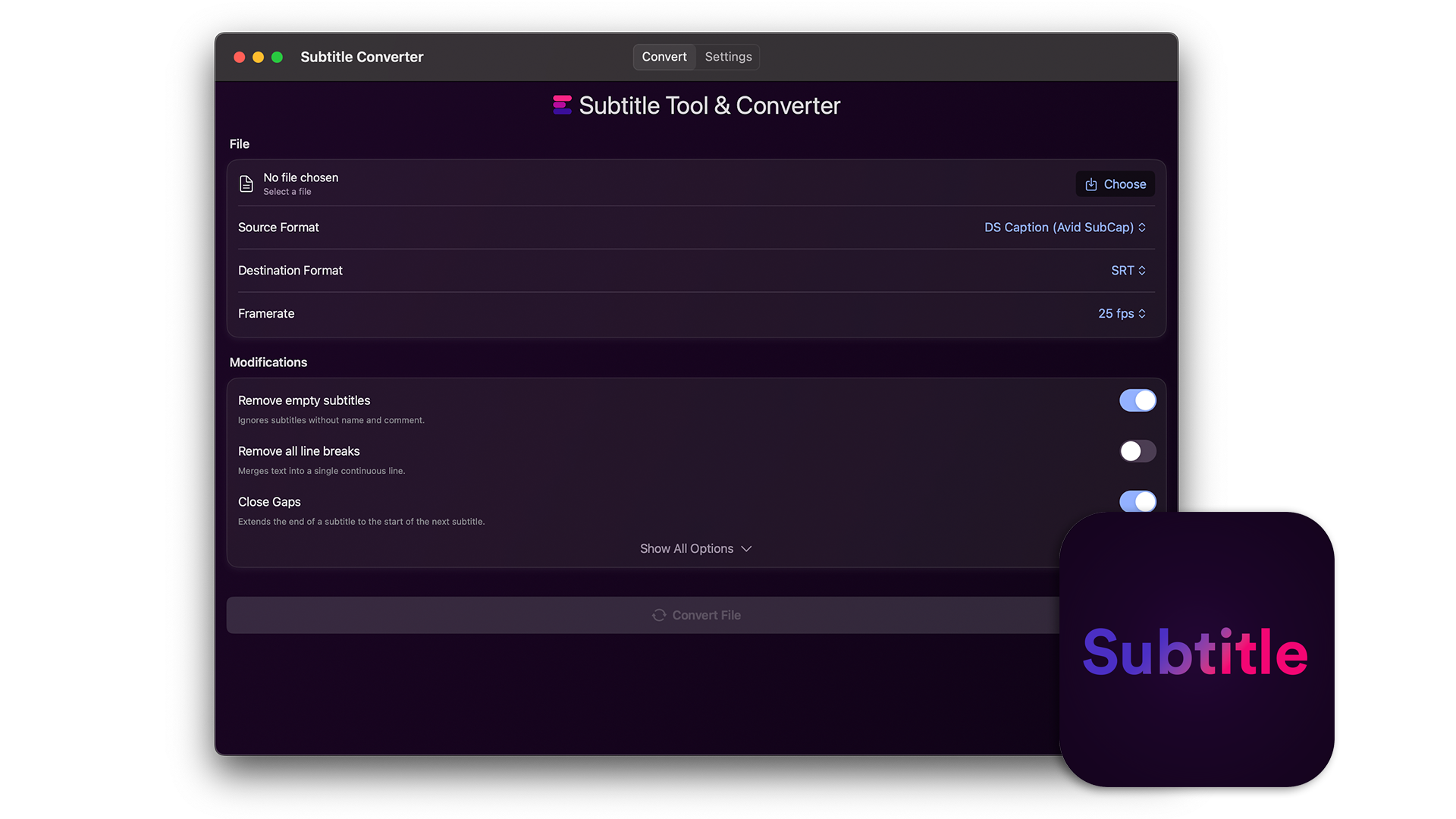 This app is a smaller version of our Subtitle Converter on EditingTools.io/subtitles and works completely offline.
